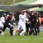 Mit wenig verbleibender Zeit stoppte die Defense der Gators Mannheim nach 3 Versuchen und so gelangte Leonberg ein letztes Mal in Ballbesitz.